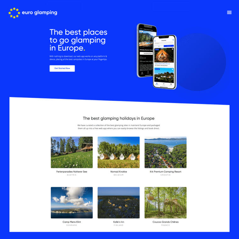 Built and launched during the first Covid lockdown in early 2020, Euro Glamping is the first progressive web app dedicated to glamping sites in mainland Europe. With no software to download the app works on any browser and on any device.View website