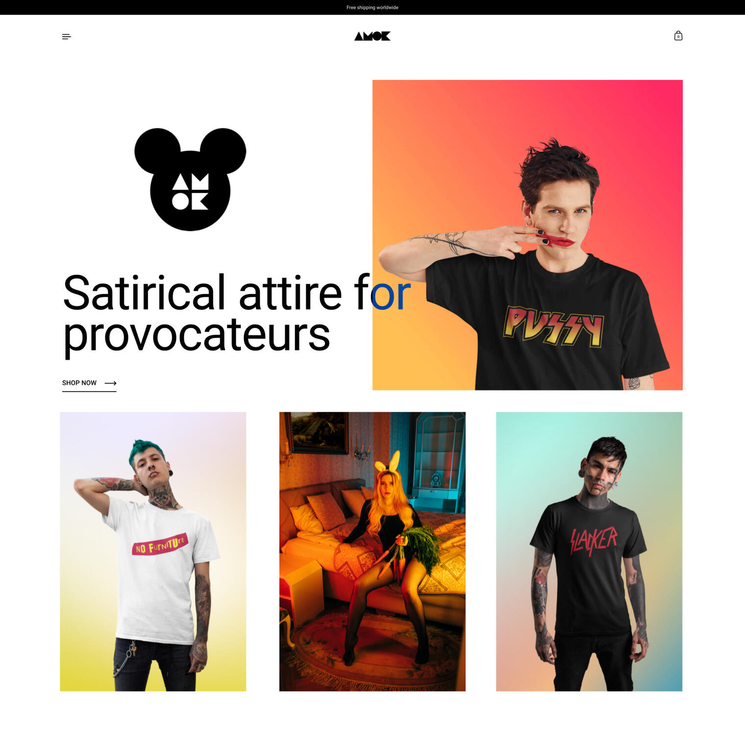 Amok started life way back in 2002 with a series of provocative t-shirts, one of which was worn by Robbie Williams. We relaunched the brand 20 years later using Shopify with orders printed on demand and shipped locally in the UK, EU and USView website